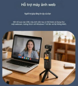 Hơn nữa, thiết bị đi kèm chân dựng gimbal cho quý khách thuận tiện đặt 1 chỗ khi không rảnh tay mà vẫn quay lại được khoảnh khắc lúc đó