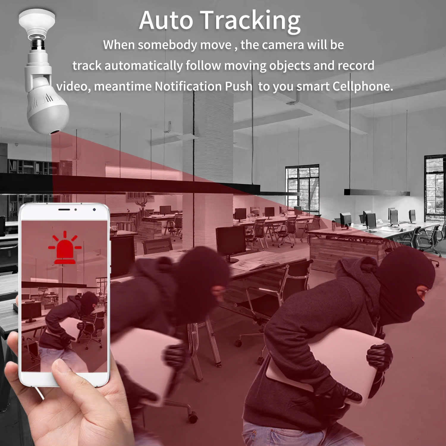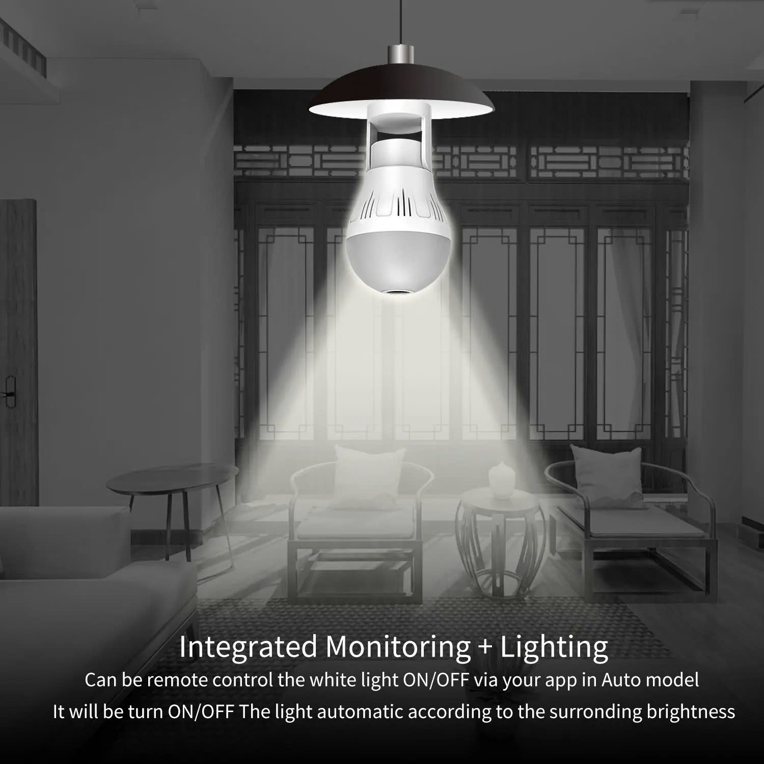 Có đui đi kèm hoặc lắp bóng vào đui có sẵn ở nhà bạn là camera hoạt động 24/24 (Tương thích với đui bóng điện dạng xoáy, nguồn điện 220V)